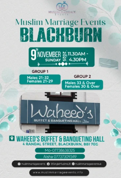 The Muslim Marriage Events Blackburn will take place on Sunday, November 9th 2025, at the elegant Waheed’s Restaurant, 4 Randal Street, Blackburn, Lancashire BB1 7EG. Running from 11:30 AM to 4:30 PM, this exclusive gathering offers a respectful, faith-based opportunity for single British Muslims to meet compatible partners in a welcoming and structured environment.
